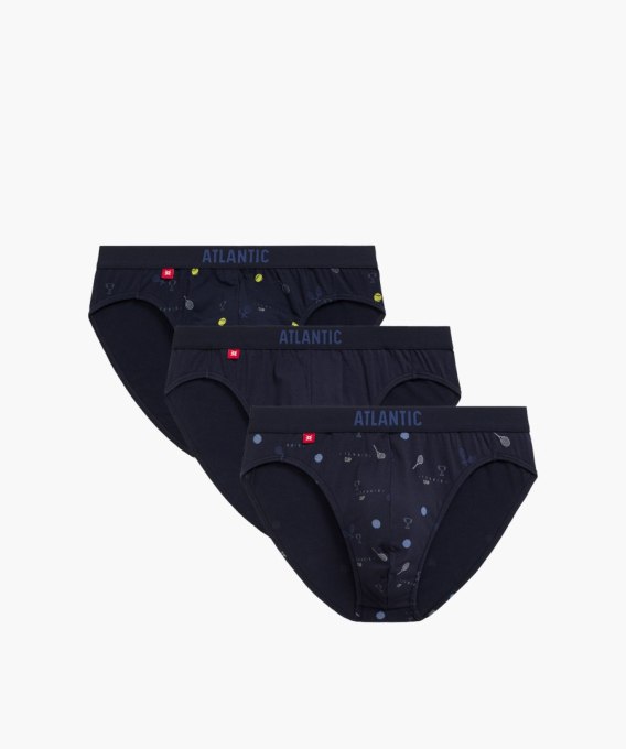 Sportowe slipy na co dzień ozdobione motywem tenisowym. Nieuciskająca guma w talii oraz miękka i przyjemna w dotyku dzianina zapewniają wygodę i swobodę ruchów. Pakowane po 3 szt. Skład: 95% bawełna, 5% elastan.