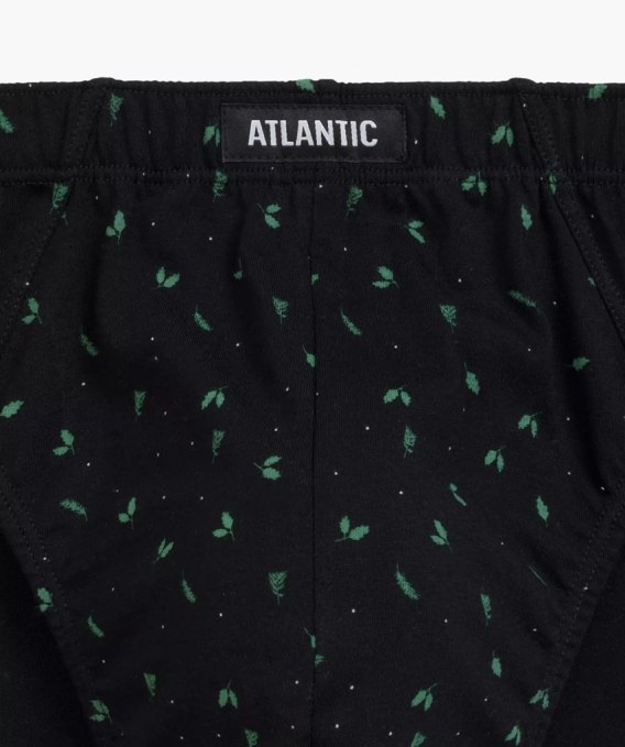 Slipy męskie o sportowym kroju z niskim stanem, wykończonym miękką i nieuciskającą ciała gumą wewnętrzną, ozdobioną logo Atlantic. Pakowane po 3 szt. Skład:100% bawełna.