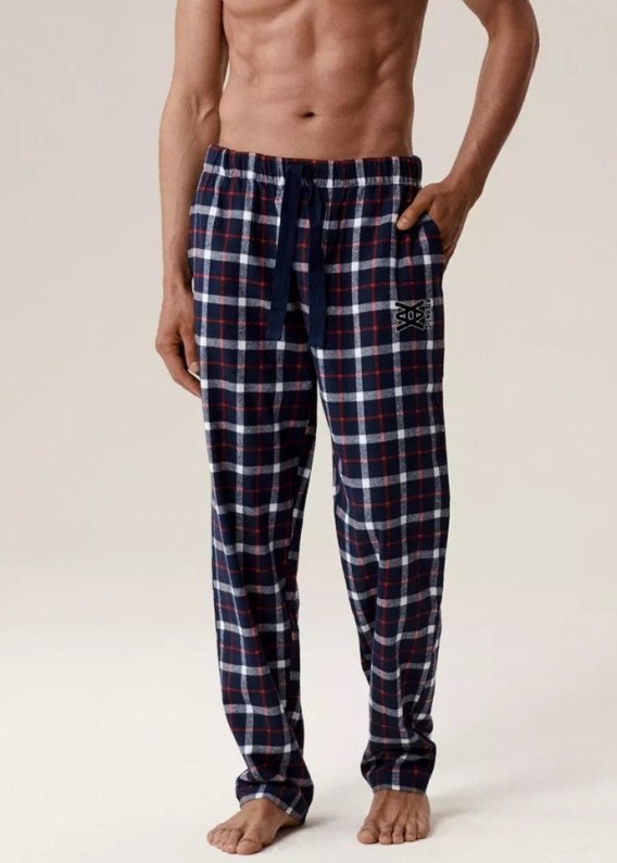 Ciepłe, flanelowe spodnie do spania i domowego relaksu. W pasie sznurek do regulacji, dający idealne dopasowanie do sylwetki, boczne praktyczne kieszenie oraz luźno puszczone nogawki. Skład:100% bawełna.