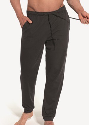 Wygodne, spodnie męskie. Wykonane z wysokiej jakości wyjątkowo miłej i miękkiej bawełny. Długie nogawki, w pasie guma z sznurkiem. Nogawki zakończone ściągaczem. Skład: 100% bawełna.