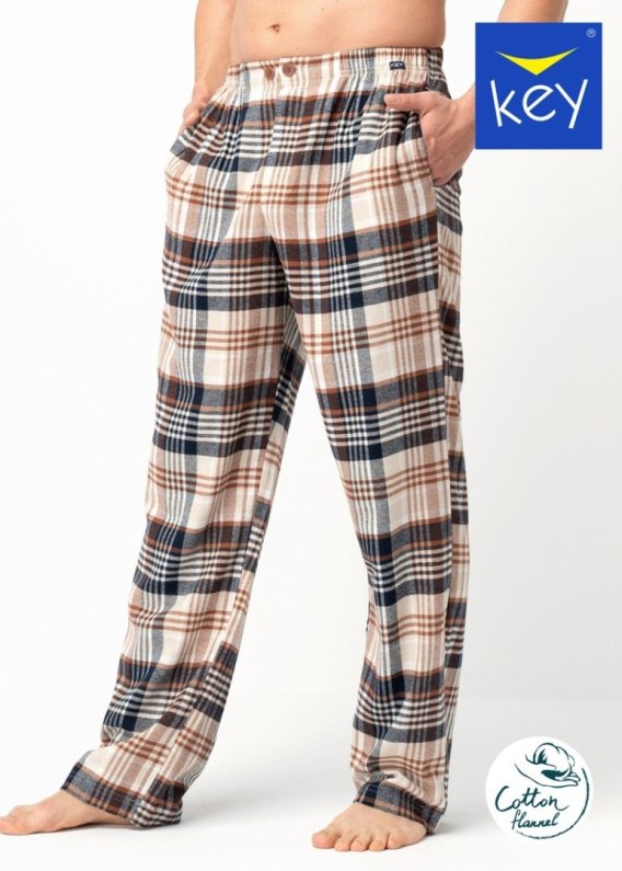 Klasyczne flanelowe spodnie domowe. To klasyczny krój, o prostej nogawce z wygodną, miękką gumę i dwoma guziczkami w pasie. Z przodu rozporek, a po bokach głębokie kieszenie.Skład: 100% bawełna.