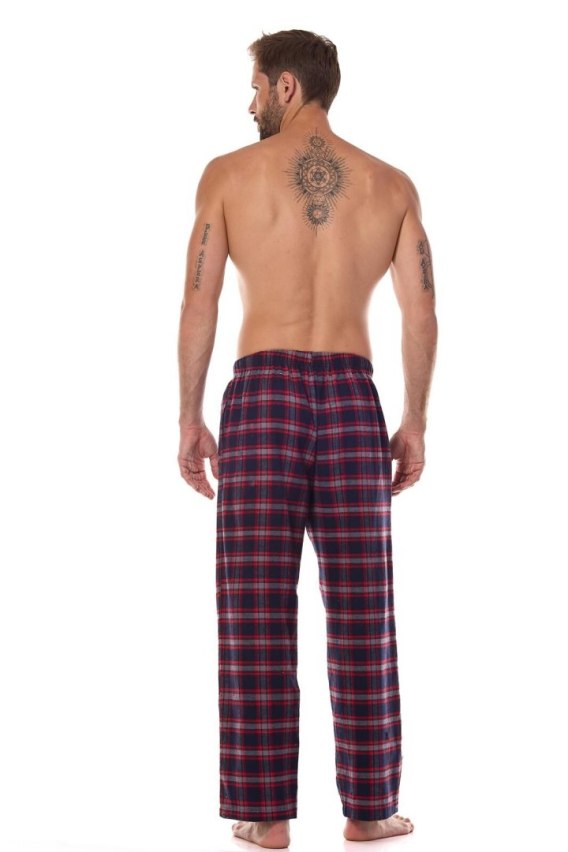 Spodnie piżamowe męskie z ciepłej flaneli w kratę. Prosty i wygodnym króju, wygodne kieszenie po bokach. W pasie guma obszyta bawełną i wiązany troczek do regulacji obwodu pasa. Skład: 100% bawełna.