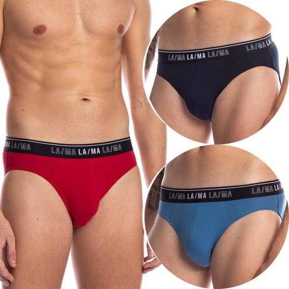 Lama 1020SD to trzypak przylegających do ciała slipów w trzech kolorach: granatowym, czerwonym, niebieskim.
