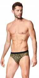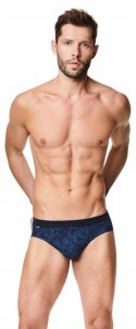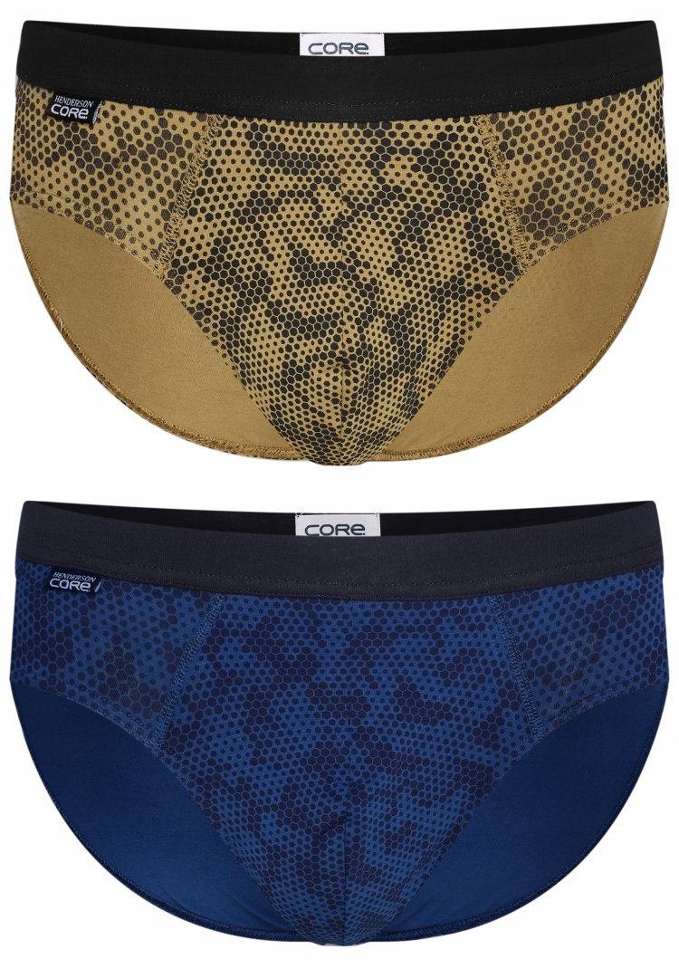 Henderson Army to wygodne slipy męskie wykonane z miękkiej bawełny. Wytrzymała i jakościowa dzianina zapewnia wysoką trwałość produktu. Majtki charakteryzują się doskonałym dopasowaniem do sylwetki. W pasie wykończone są komfortową gumą z nazwą producenta. W zestawie dwa różne, modne wzory w złoto-granatowej kolorystyce. Bielizna Henderson to gwarancja jakości i wygody, a ciekawe wzornictwo zahacza o aktualne trendy w modzie.