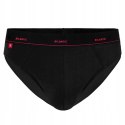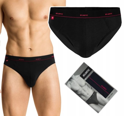 Atlantic MP-1568 to czarne slipy męskie zaznaczone w talii szeroką i niezwykle miękką gumą. Slipy mają sportową estetykę - są dość wysoko wycięte po bokach, dzięki czemu eksponują i wydłużają nogi. Bielizna wykonana jest z dzianiny będącej połączeniem delikatnej i przyjemnej w dotyku bawełny pima (pima cotton), cienkiego i jedwabistego modalu oraz rozciągliwego elastanu. Połączenie to jest przyjazne dla skóry, przepuszczające powietrze i niedopuszczające do nadmiernego pocenia się ciała. Majtki zapewniają komfort noszenia w najwyższym wydaniu.