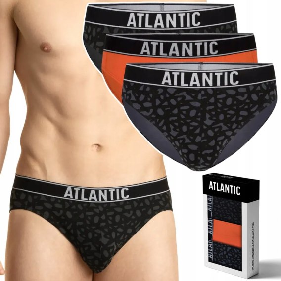 ⭐ Atlantic 151 to trzypak dopasowanych slipów w kolorach: czarnym, pomarańczowym i grafitowym.