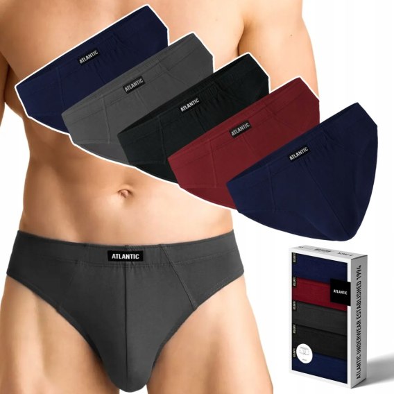 Slipy męskie BAWEŁNIANE 5 PAR dopasowane ATLANTIC 5SMP-001 - M