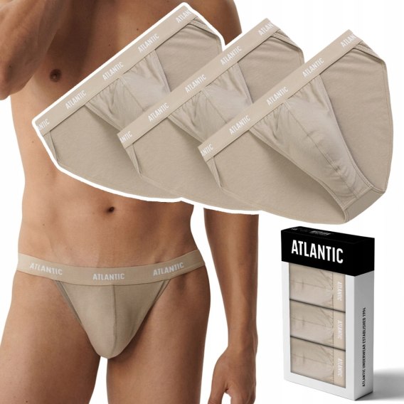 Slipy męskie TANGA 3 PARY skąpe majtki bawełniane ATLANTIC 3BMP-1582