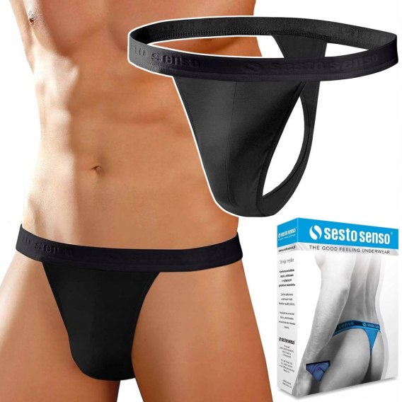 Stringi Męskie Wygodne Majtki Bawełniane SESTO SENSO STM01 Czarne