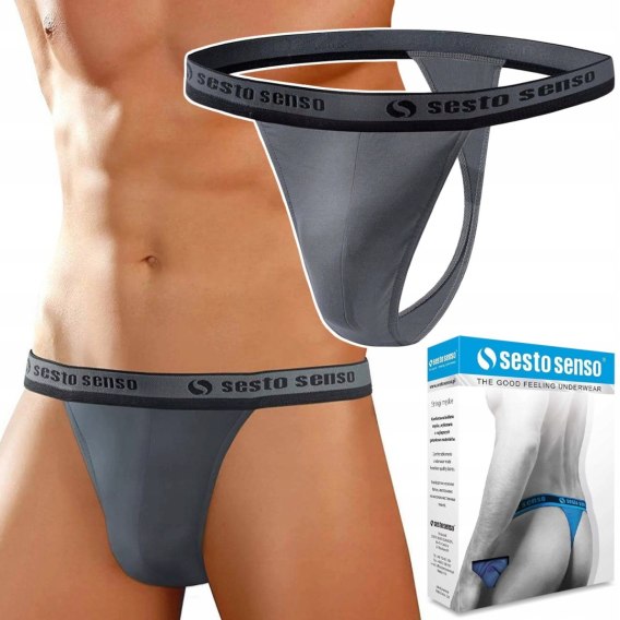 Stringi Męskie Wygodne Majtki Bawełniane SESTO SENSO STM01 Grafitowe