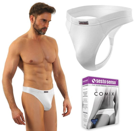Sesto Senso Comix to męskie stringi wykonane z przyjemnego w dotyku mikromodalu. Charakteryzują się odważnym i modnym krojem. Płaskie szwy podkreślają sportowy styl i zapewniają najwyższy komfort noszenia. Wysokiej jakości, niewiarygodnie elastyczne mikrowłókno sprawia, że stringi COMIX idealnie się dopasowują do ciała i nie tracą swojej formy podczas użytkowania.