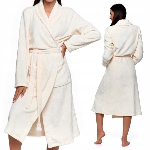 • Szlafrok damski ciepły miękki PLUSZOWY z wiązaniem w pasie MORAJ - M