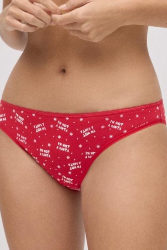 Czerwone figi damskie z nadrukiem „I’m not a Santa” to propozycja dla kobiet, które lubią połączenie komfortu z odrobiną humoru. Wykonane z miękkiej, oddychającej bawełny z dodatkiem elastanu, doskonale dopasowują się do sylwetki i gwarantują wygodę przez cały dzień. Świąteczny motyw z napisem i drobnymi śnieżynkami dodaje bieliźnie uroku, a klasyczny krój zapewnia swobodę ruchów i idealne dopasowanie pod codzienne stylizacje. To idealny wybór na zimowy sezon – zarówno jako codzienna bielizna, jak i świąteczny prezent.